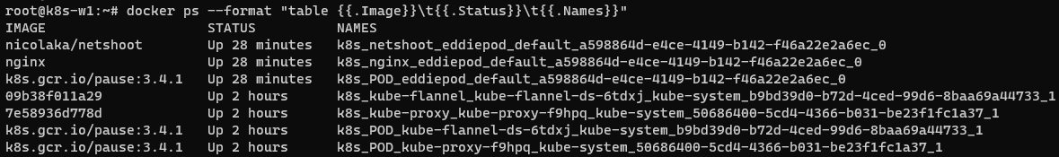 새롭게 배포한 Pod(eddiepod)와 같은 Uptime을 가진 PAUSE 컨테이너를 확인할 수 있습니다.