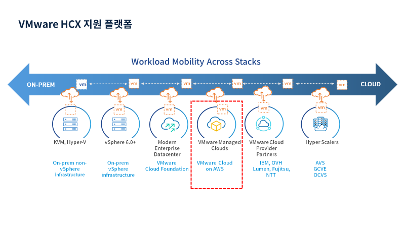 HCX는 기존 환경의 플랫폼을 가리지 않습니다.