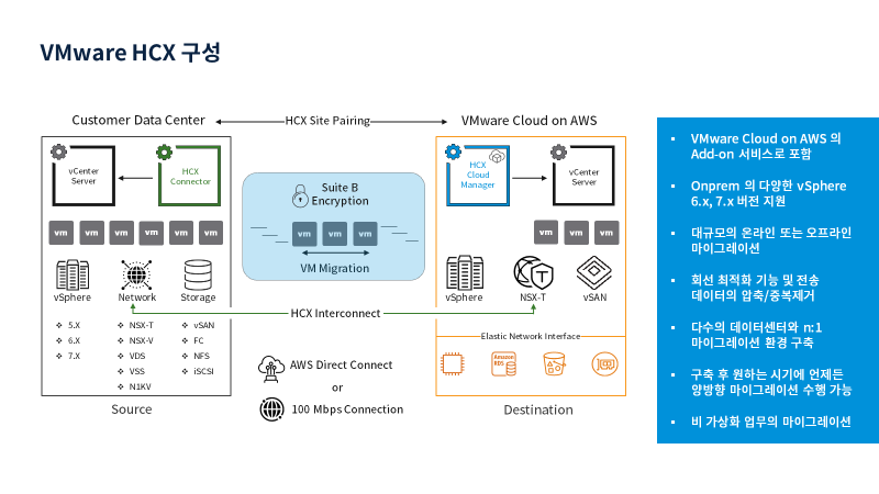 이 모든 마이그레이션은 HCX라는 VMware Cloud on AWS와 함께 제공되는 솔루션을 통해 이루어집니다.