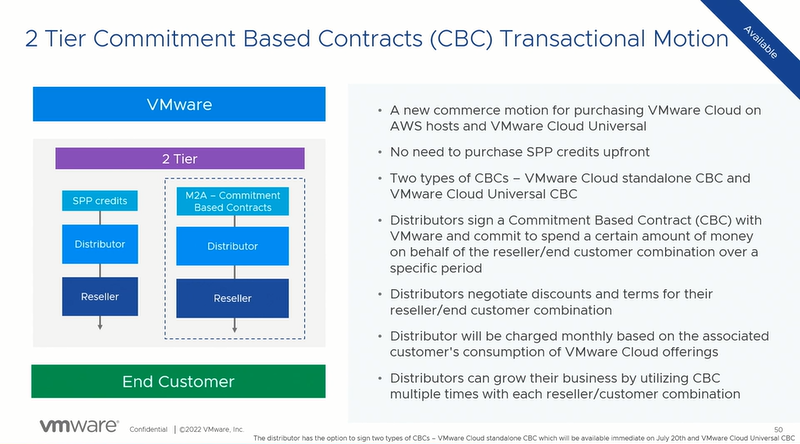 Distributor는 기존의 SPP 크레딧을 선불로 구매하는대신 VMware와 Commitment 기반의 계약(CBC)을 체결 합니다.