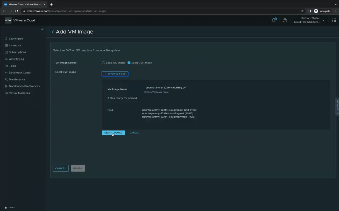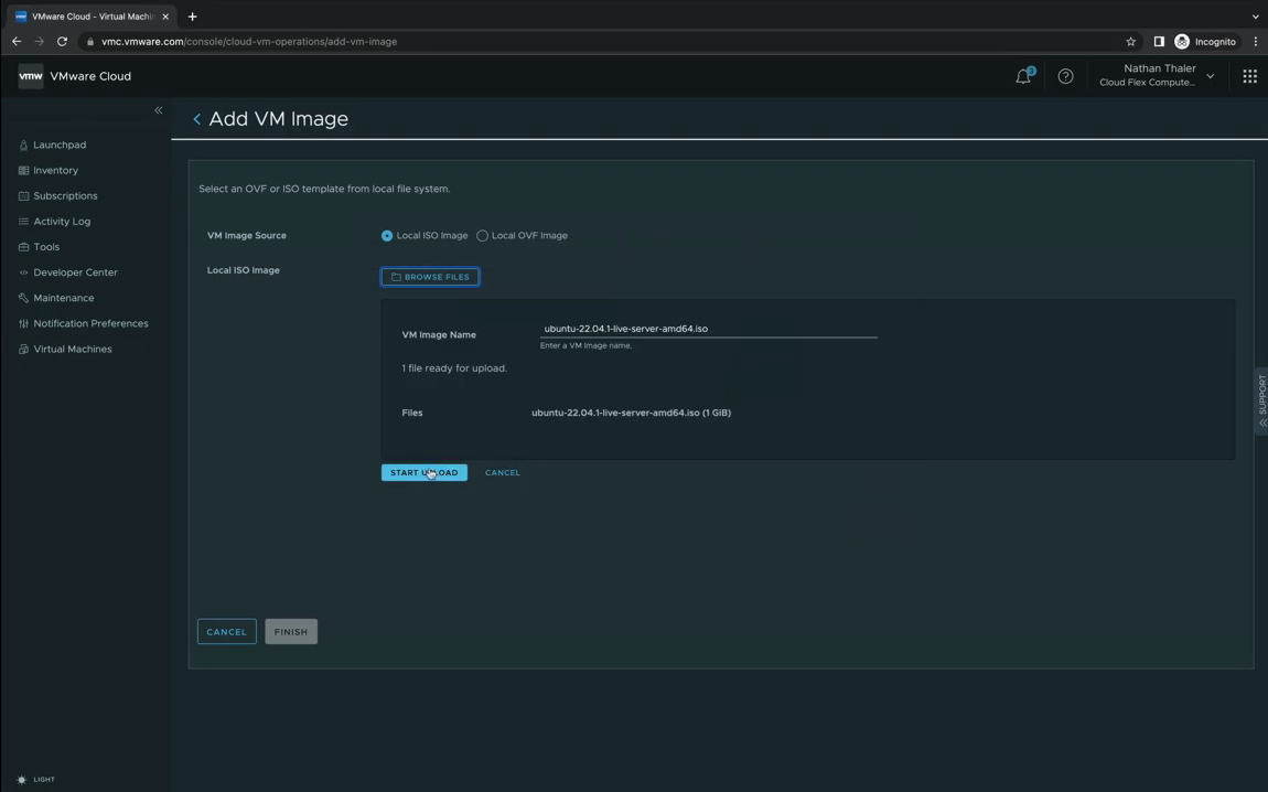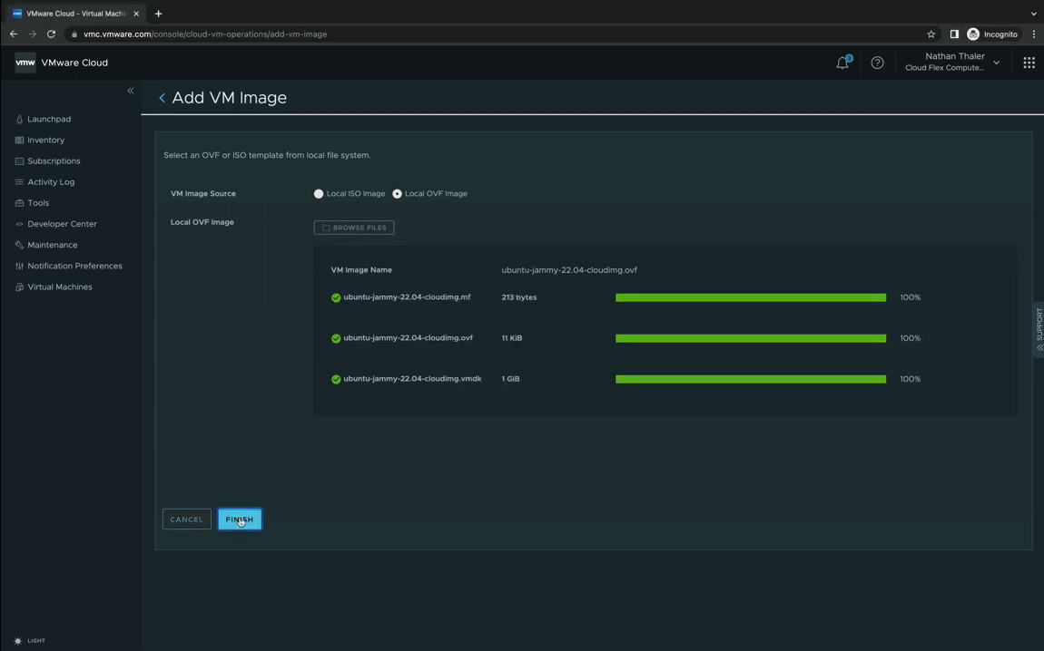 업로드가 완료되면 'FINISH'를 선택하여 VM images 메뉴로 돌아옵니다.
