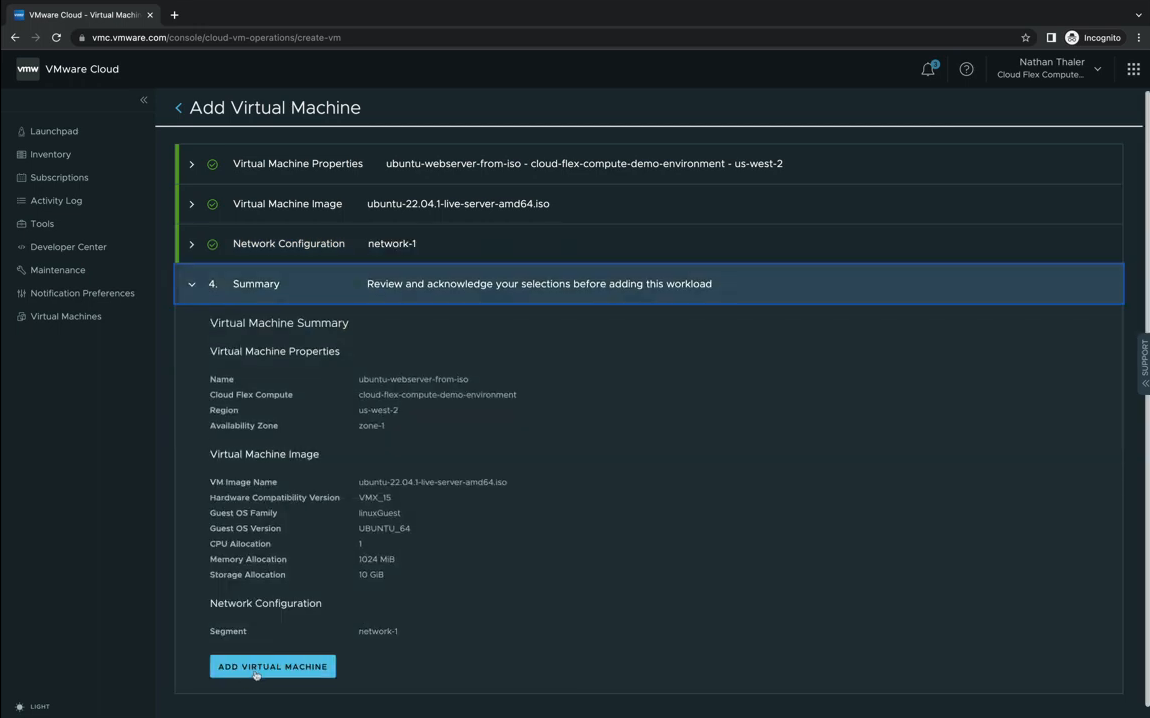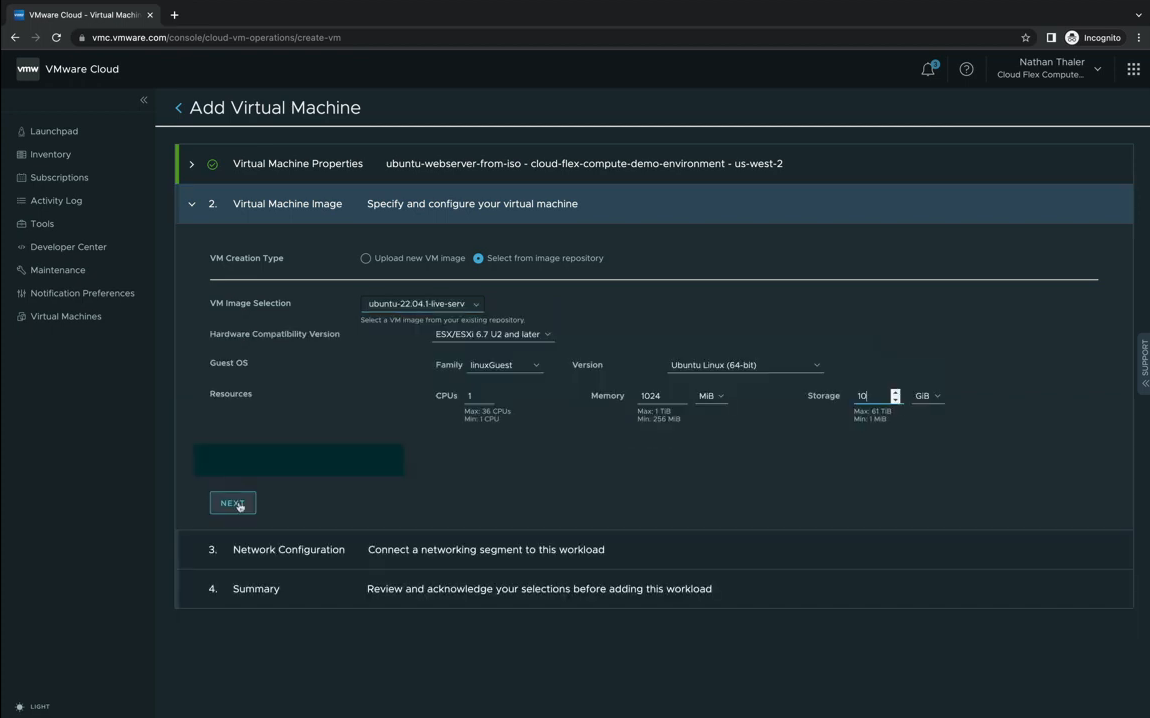 VMware Cloud Flex Compute의 구성은 매우 간단합니다.