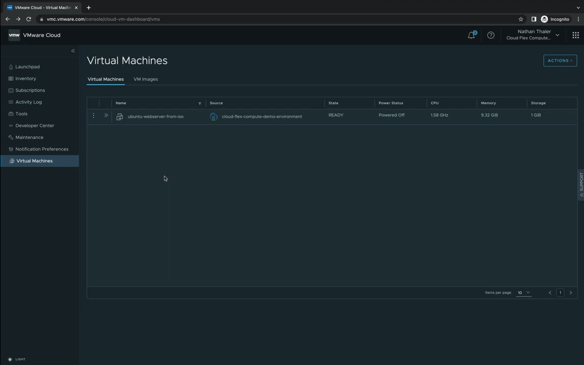 기존에는 SDDC와 SDDC Groups만 있던 Inventory에 Cloud Flex Compute라는 메뉴가 생겼습니다.