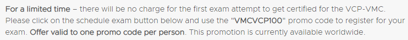 Pearson Vue에서 시험 접수 마지막 단계에서 쿠폰코드 'VMCVCP100'을 입력하면 시험비를 할인 받을 수 있습니다.