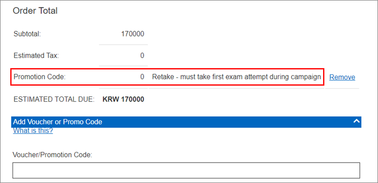 방법은 아주 간단하며, 시험 접수시 프로모션 코드에 PEARSONKR 를 입력하기만 하면 됩니다.