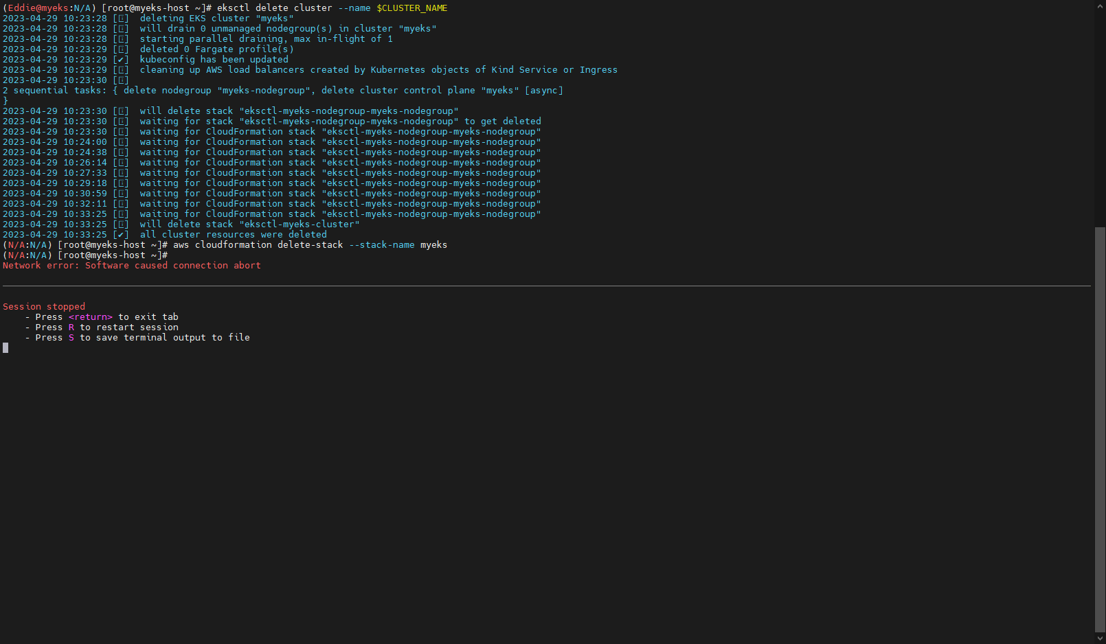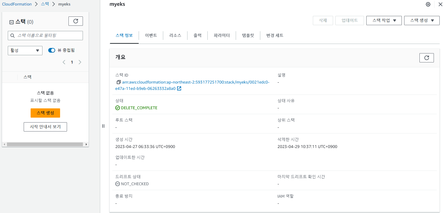 5단계. EKS 구성 삭제 : 배포된 EKS 클러스터 삭제 후 CloudFormation 삭제