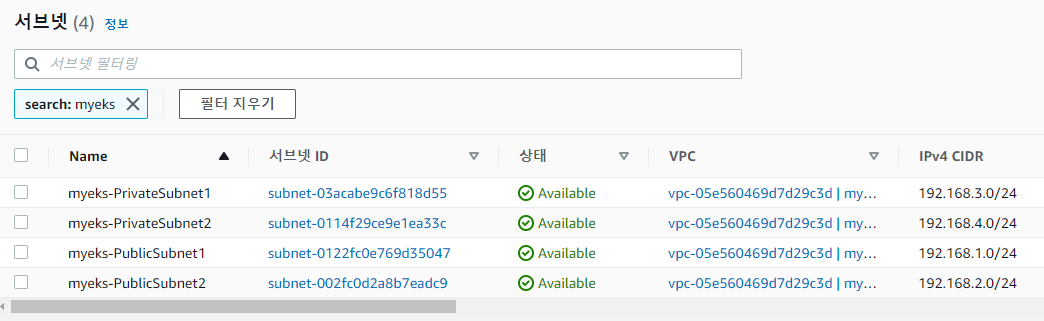 - SgIngressSshCidr: EKSCTL 작업을 수행할 EC2 인스턴스를 접속할 수 있는 IP 주소 입력 - Bastion 접속용 보안그룹