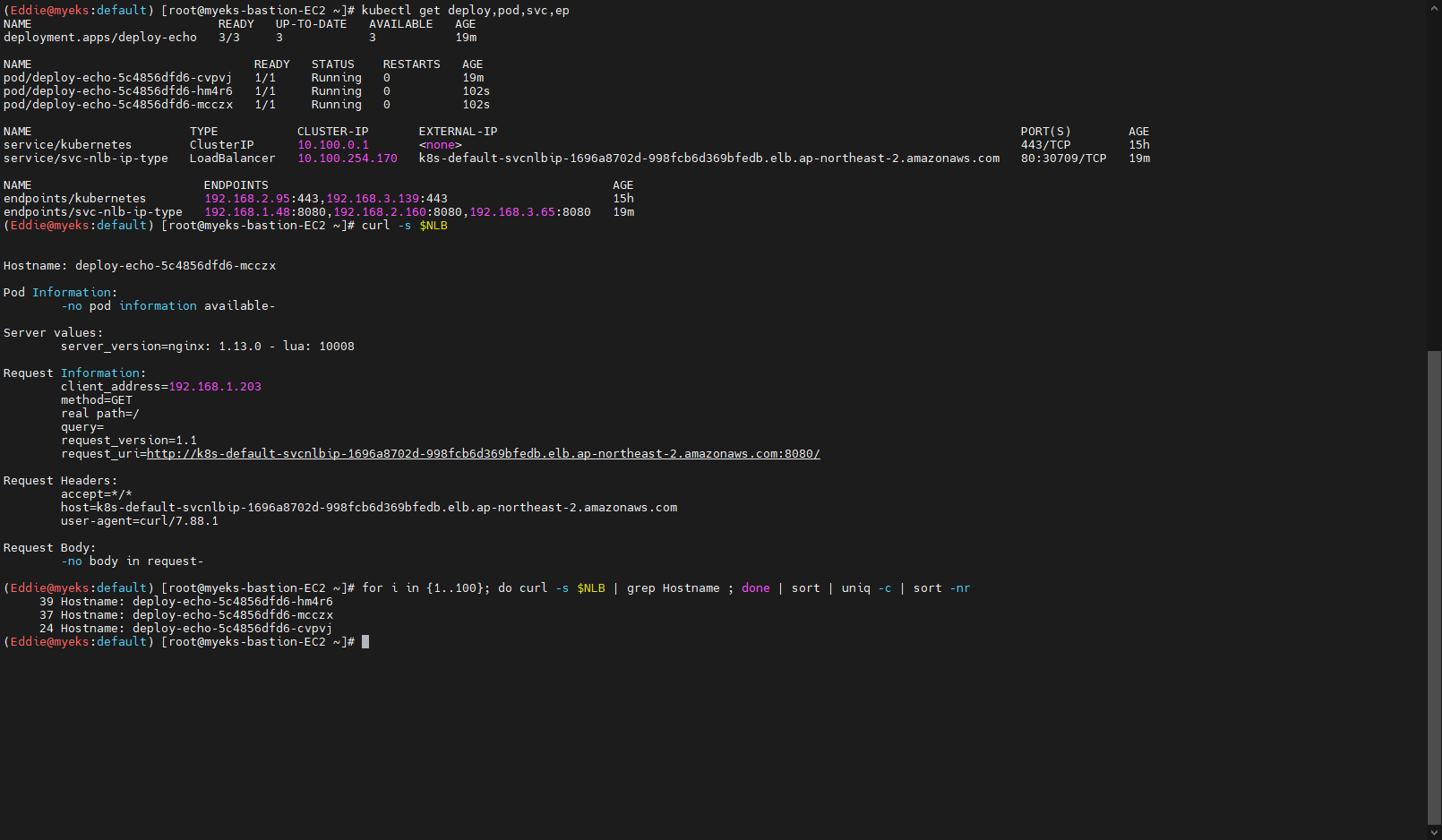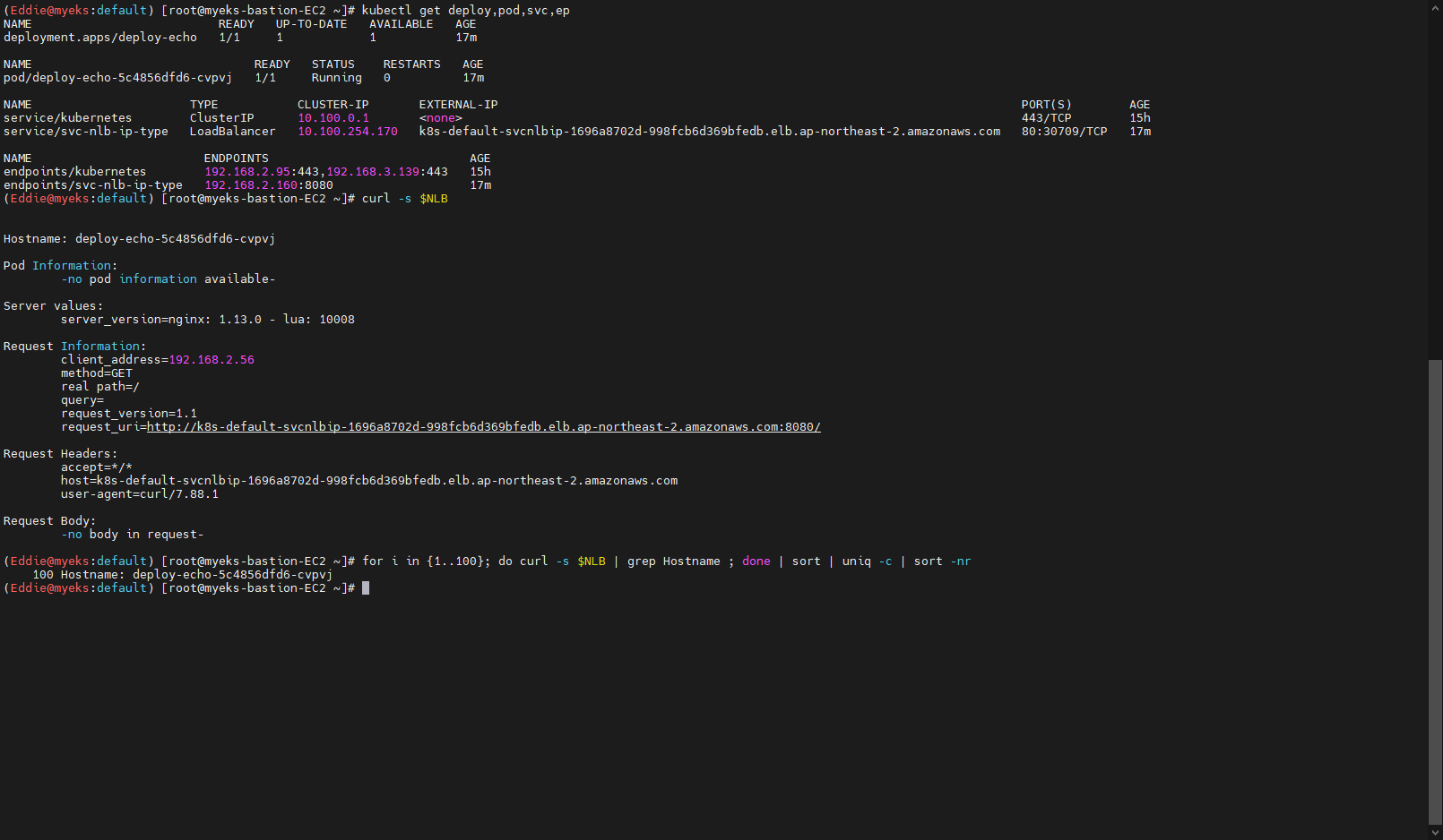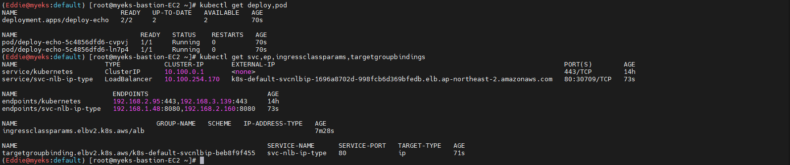 1) endpoint/svc-nlb-ip-type : 실제 로드분산될 pod들의 주소