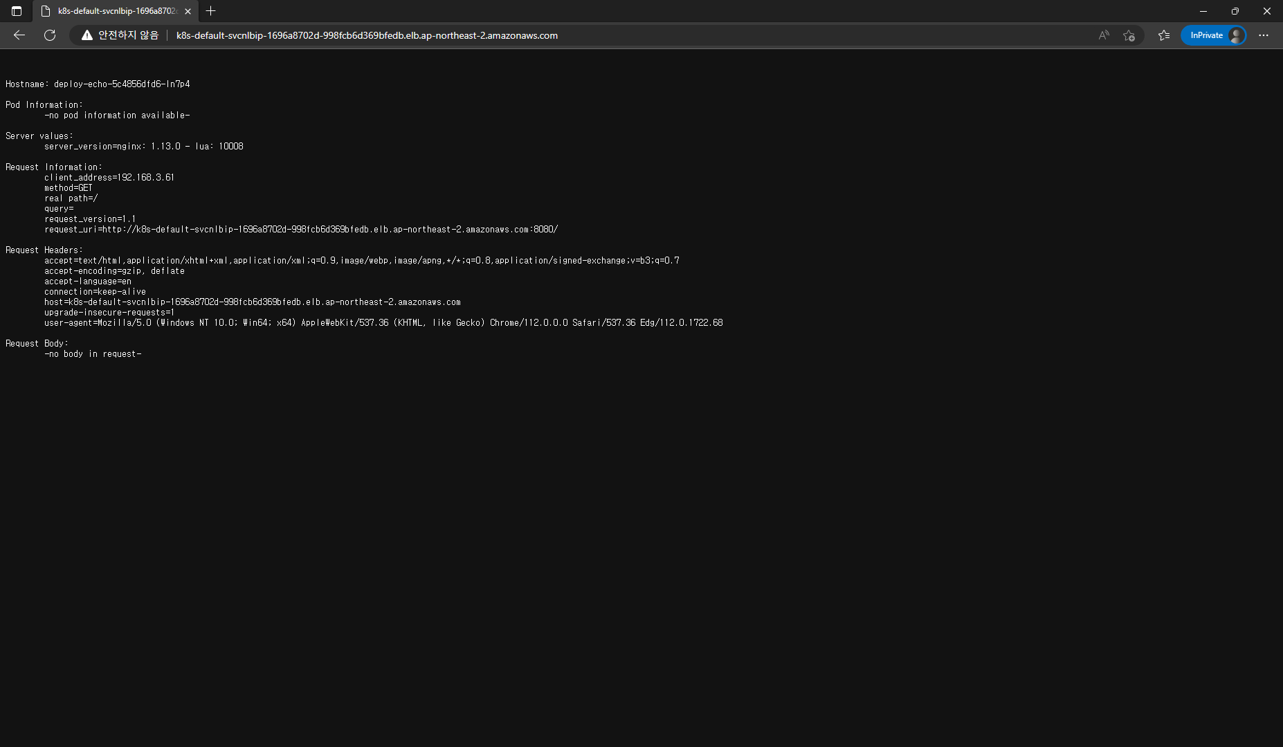 - 웹브라우저를 통한 NLB 서비스 접속 확인