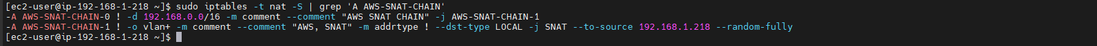 2) Chain1 : 외부 통신인 경우 인스턴스의 공인 IP로 SANT하여 외부 통신