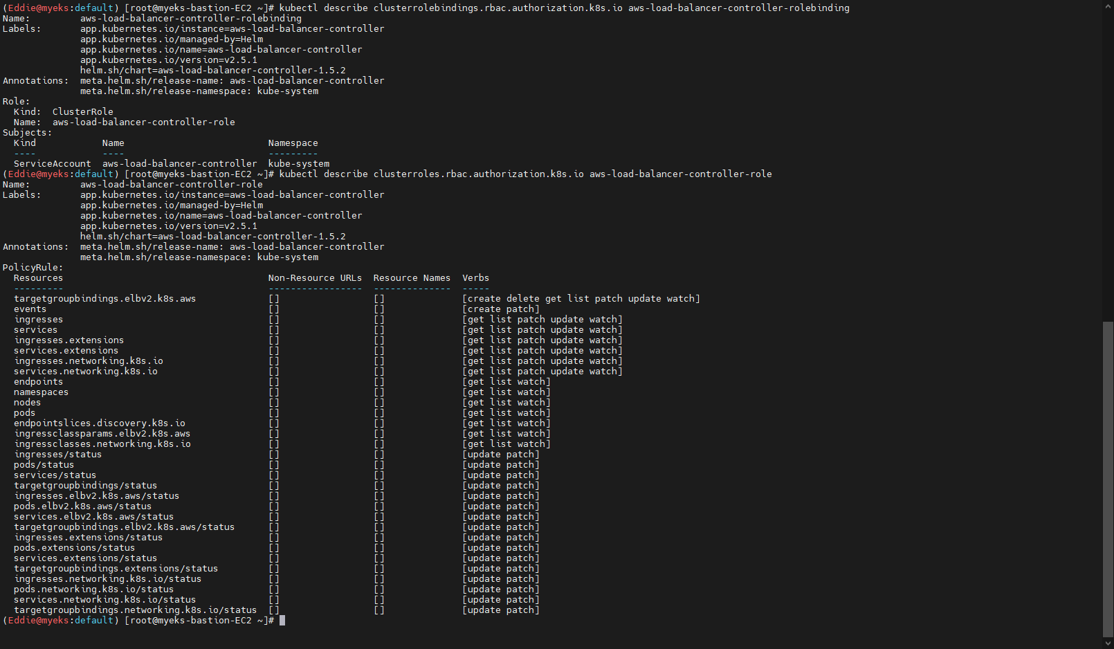 - 클러스터 및 Role 확인 : targetgroupbindings을 위한 생성, 업데이트, 삭제 권한 등 보유
