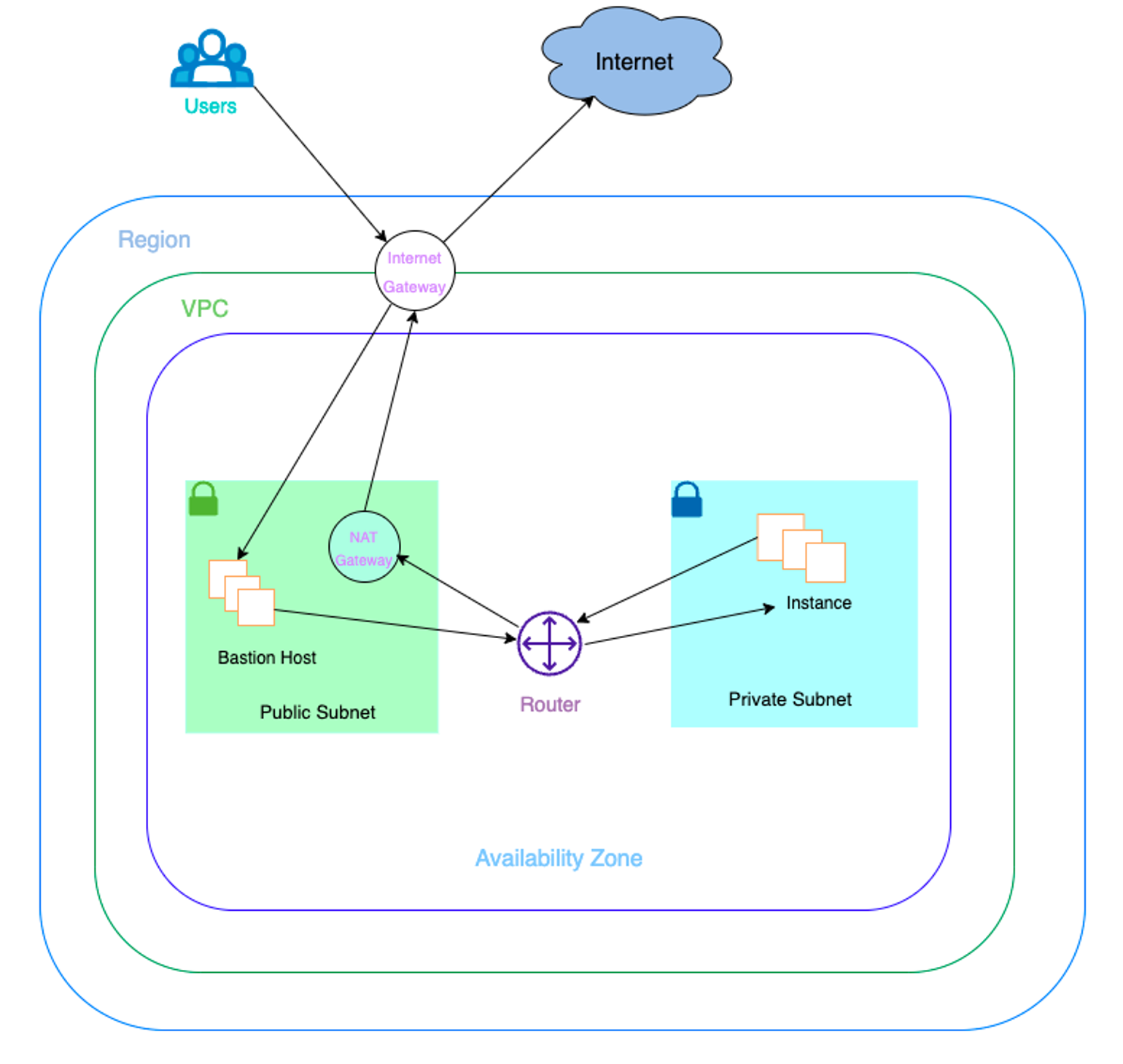 - SSH 터널링 구성 통해 외부에서 private 서브넷에 위치한 EC2 인스턴스 접근