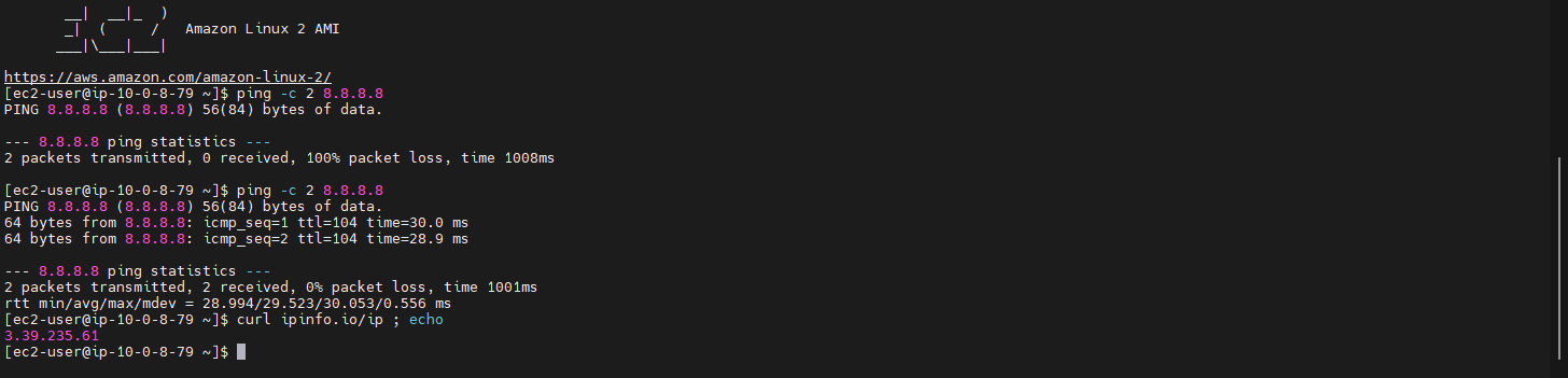 - 신규 생성된 EC2에 접속 후 ping 확인