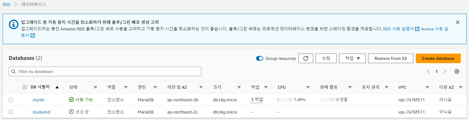 - RDS의 식별자를 변경 시도 : 변경을 기대했으나, 신규 RDS가 배포되고, 기존 RDS도 그대로 유지