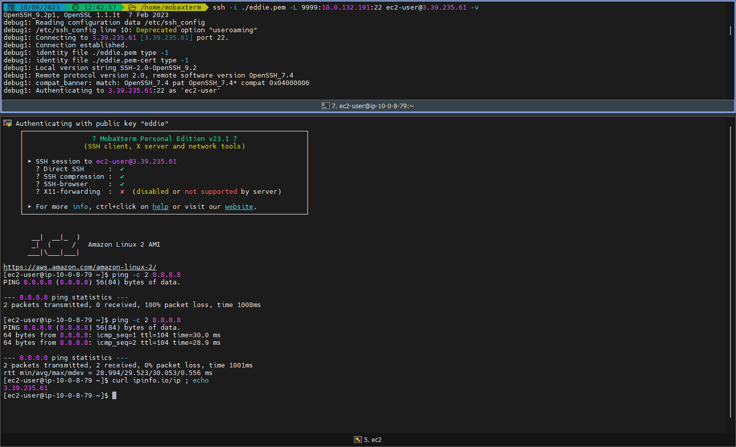 ssh -i ./eddie.pem -L 9999:10.0.132.191:22 ec2-user@3.39.235.61 -v