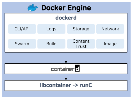 위 그림처럼 Docker 엔진에서는 dockerd라는 컨테이너를 만들어 주는 기본 기능 외에도