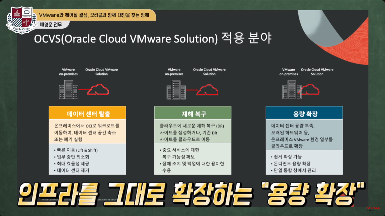 VMware 환경 그대로 클라우드에서 사용하며, 하드웨어에 대한 운영 및 기술지원은 오라클이 담당하여,