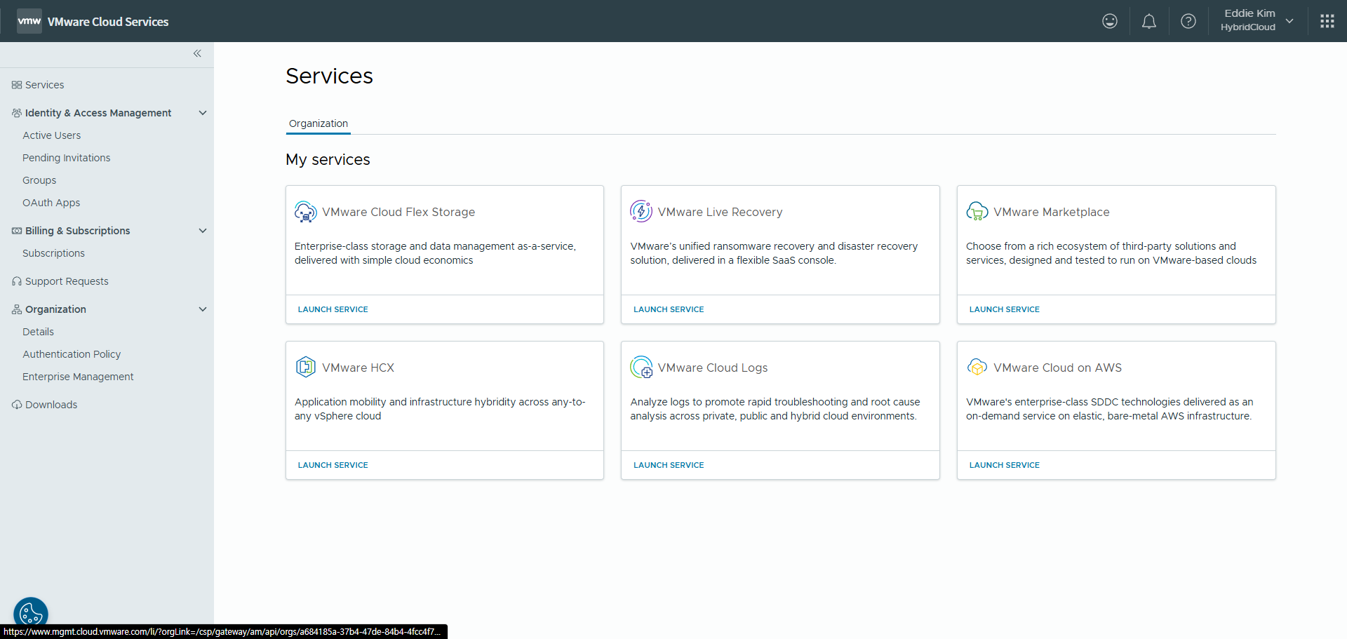 새로운 인터페이스를 통한 서비스가 제공되며, 기존 VMware Cloud Services와 동일한 인증을 사용하므로,