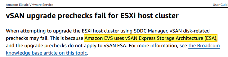 EVS는 vSAN의 ESA 아키텍처를 사용하여 별도의 Cache와 Data 디스크를 구분하지 않고,