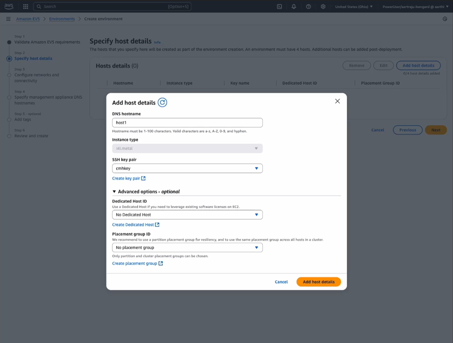 시작을 위해 오른쪽 위의 'Add host details'를 선택합니다.