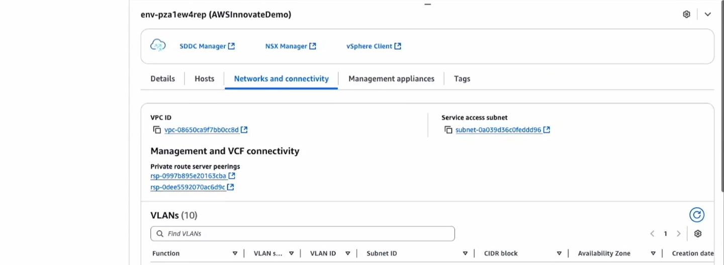 - Network and connectivity : 배포시 설정한 다양한 용도별 VLAN에 대해 구성상태를 보여줍니다.