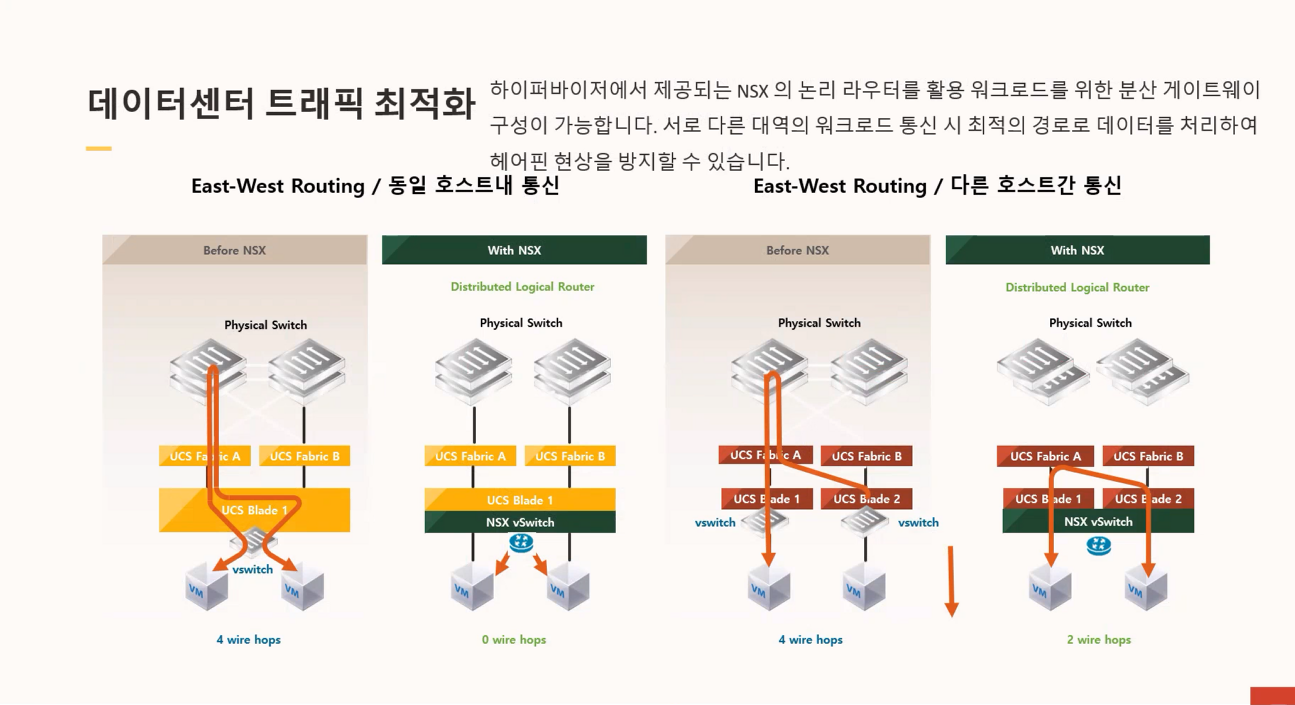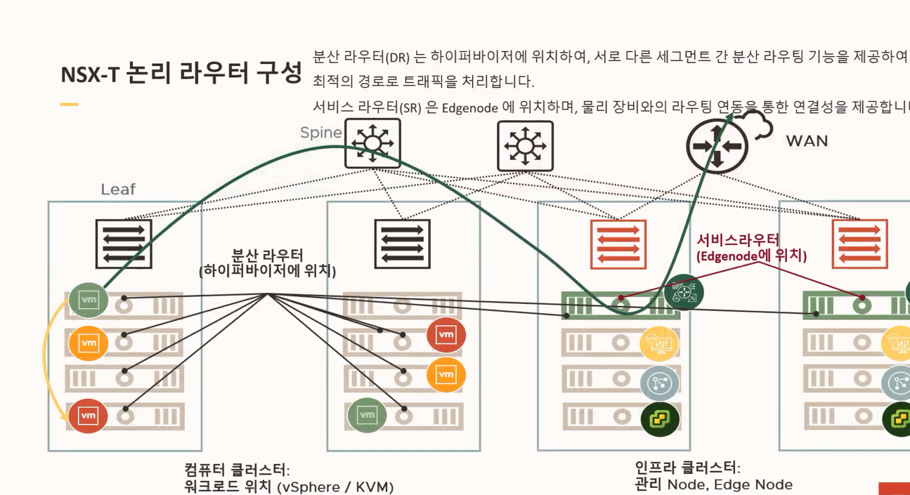 내부 통신을 위한 분산라우터는 각 ESXi hypervisor위에 위치하고 있다고 볼 수 있습니다.