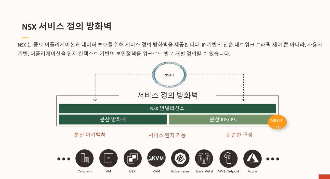 또한, NSX-T에서 분산침입탐지시스템도 구현되어, 보안적인 측면에서 강력한 기능을 제공하고 있습니다.