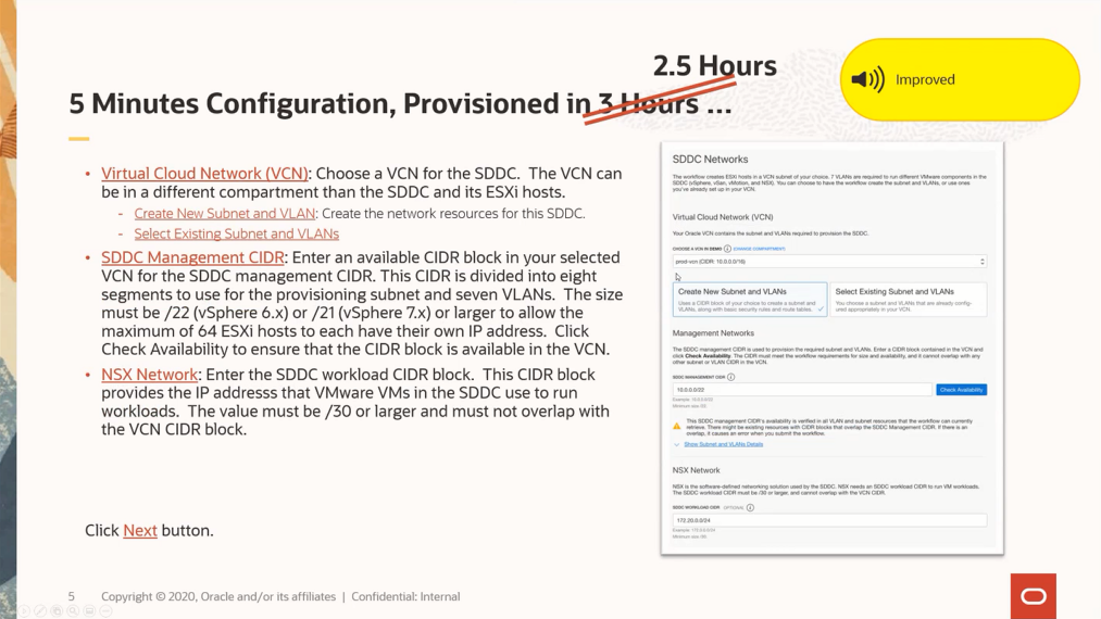 선택된 VCN에서 사용 가능한 SDDC 관리용 CIDR의 입력이 필요합니다.