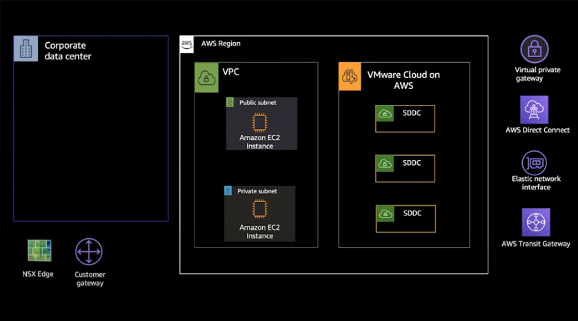 VMware Cloud on AWS의 SDDC 또한 VPC 안에 위치하고 있습니다.