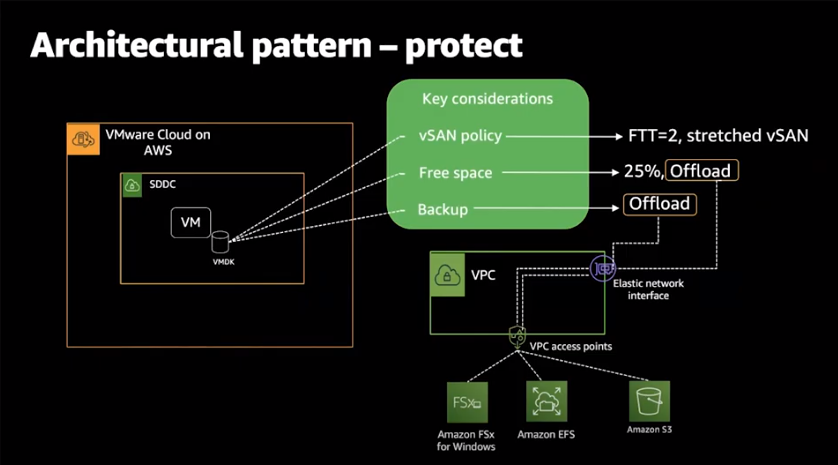 즉, 백업의 저장을 SDDC 내부가 아닌 native AWS의 스토리지 서비스를 이용하여 저장합니다.