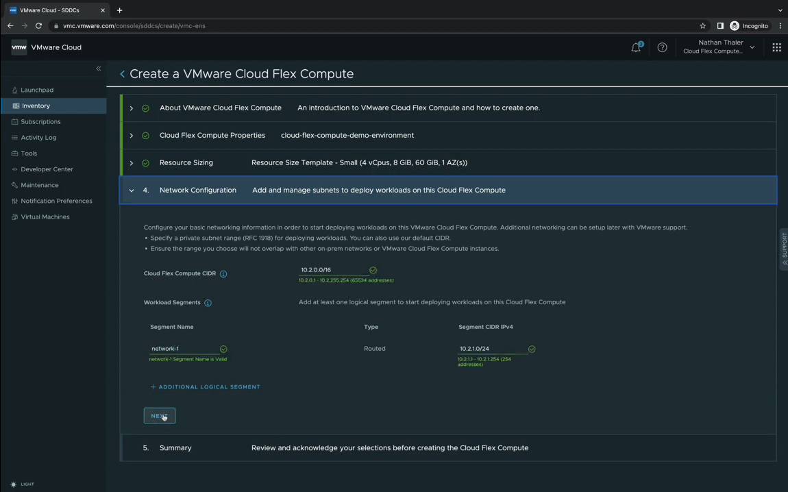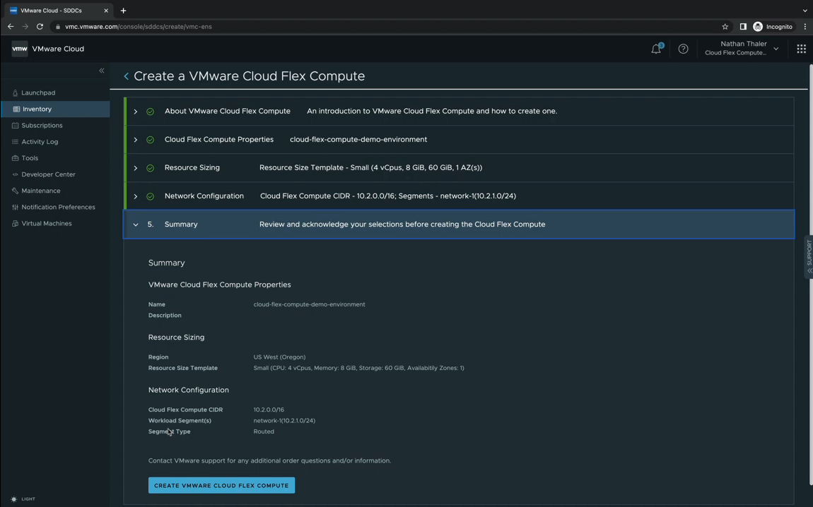 VMware Cloud Flex Compute의 구성은 매우 간단합니다.