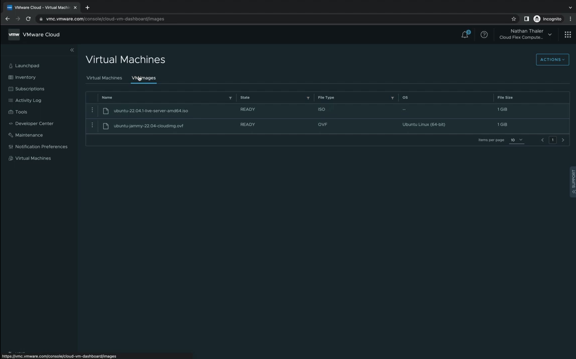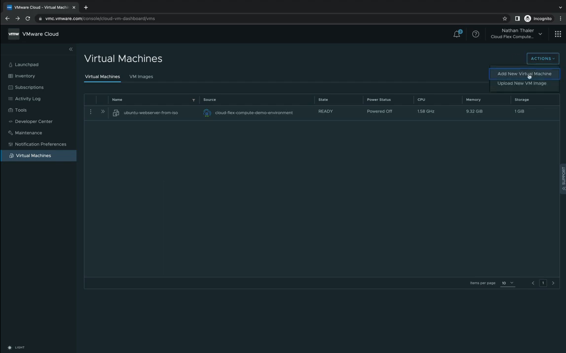 기존에는 SDDC와 SDDC Groups만 있던 Inventory에 Cloud Flex Compute라는 메뉴가 생겼습니다.