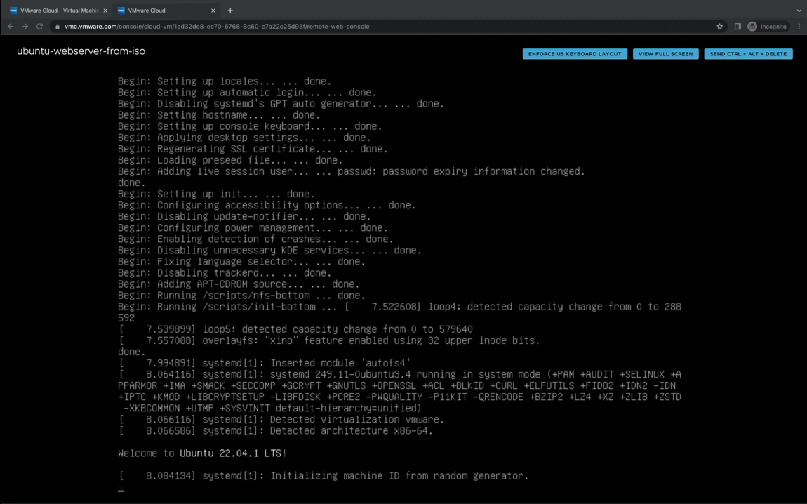 ISO를 이용한 부팅이 진행되는 것을 웹브라우저를 통해 확인할 수 있습니다.