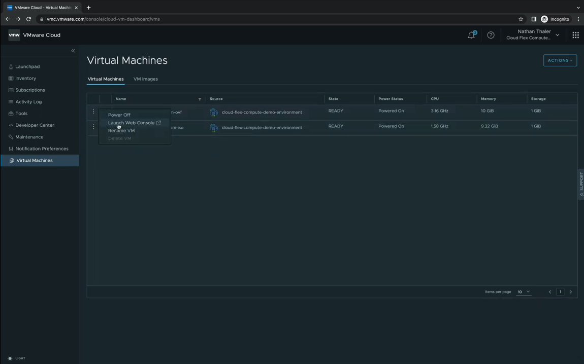 사용자가 VMware Cloud Service에 로그인하면 VMware Cloud Flex Compute라는 새로운 메뉴를 만날 수 있습니다.