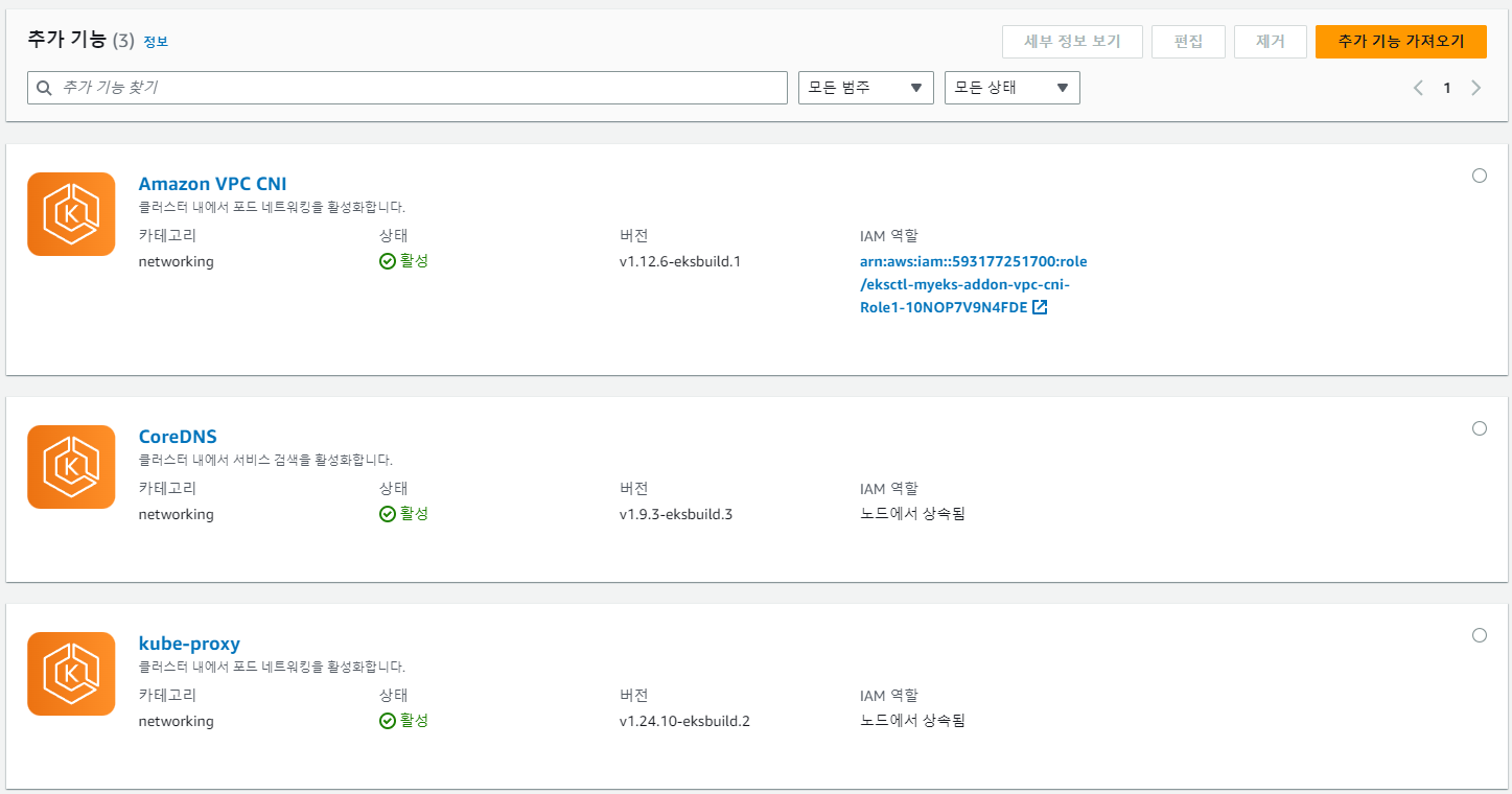 - Add-on : 최신 버전 kube-proxy, coredns, aws vpc cni