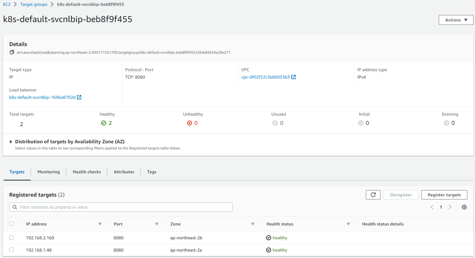 - 실제 생성된 NLB를 확인 : 자동 생성 후 Target에 pod 자동 등록