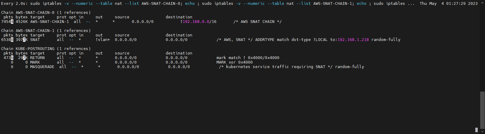 - 외부로 나가기 위해 Node가 가지고 있는 IPtables를 최소한으로 사용함을 확인