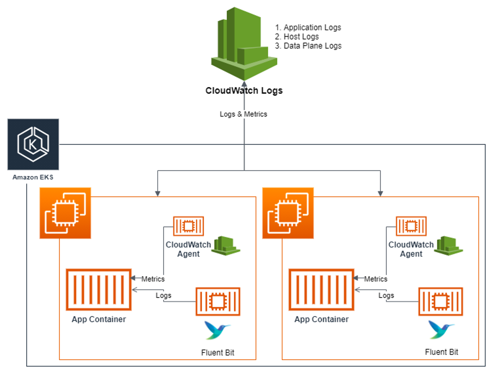 Log를 수집하는 Fluent Bit의 경우 중요 3가지 종류의 로그를 수집하여 CloudWatch Logs로 전송하고 있습니다.