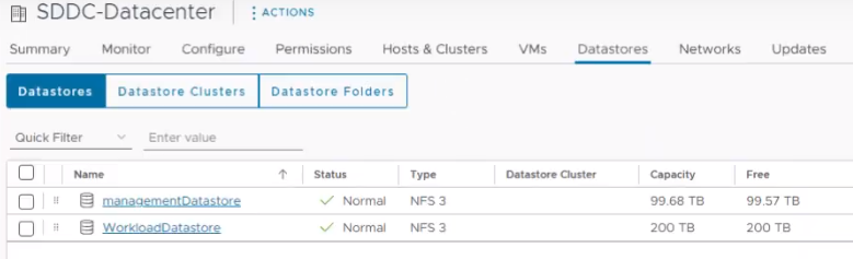 따라서 m7i.metal-24xl에서는 SDDC 배포시 관리용 컴포넌트들을 위한 기본 외장형 데이터스토어를 가지고 잇으며,