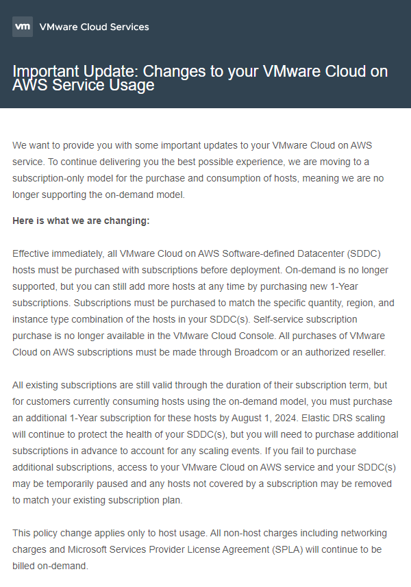 만약 현재 구독없이 사용되고 있는 on-demand host가 있다면, 8월 1일전까지 구독으로 전환해야 합니다.
