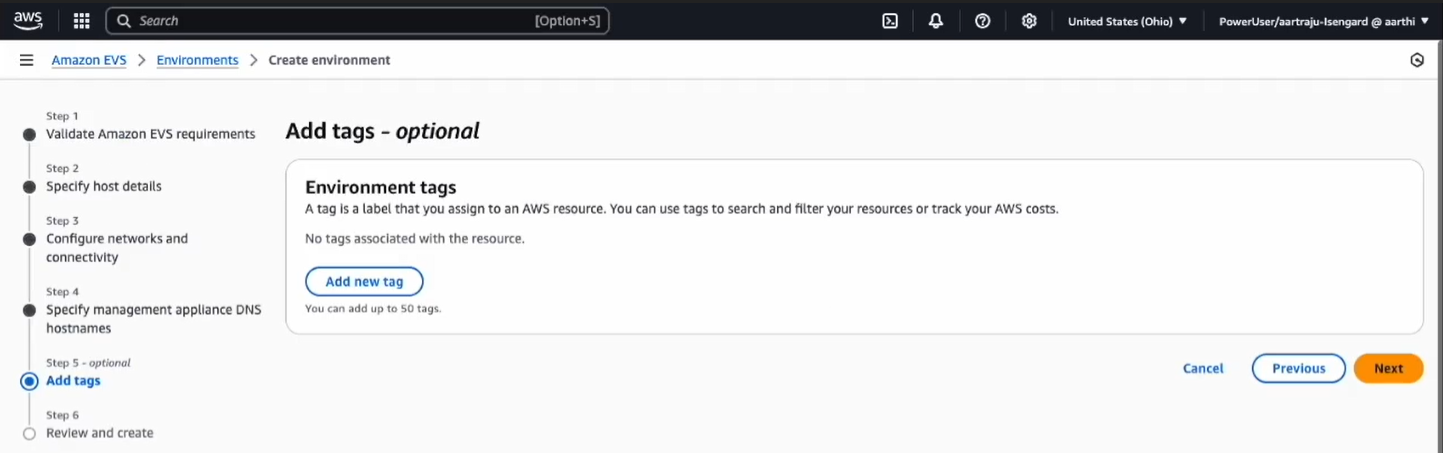 이제 본격적으로 AWS 콘솔을 통해 VCF 환경의 EVS를 배포하며, 전체 배포 과정은 약 3~4시간정도가 소요됩니다.