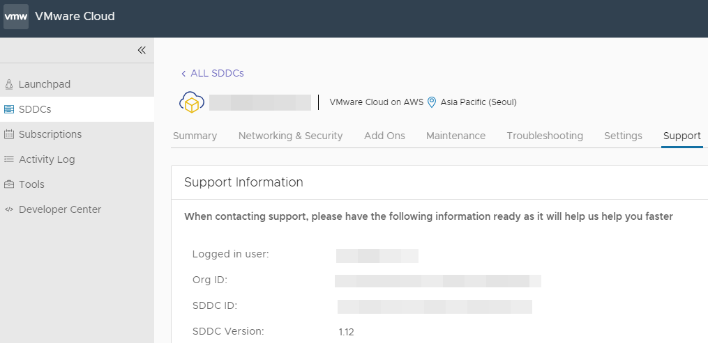마지막으로, 내가 사용하고 있는 버전에 대한 확인은 VMware Cloud Console에서 확인할 수 있습니다.