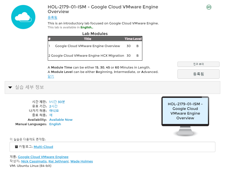 VMware Hands-on Lab에 Google Cloud VMware Engine에 대한 링크를 모아봅니다.