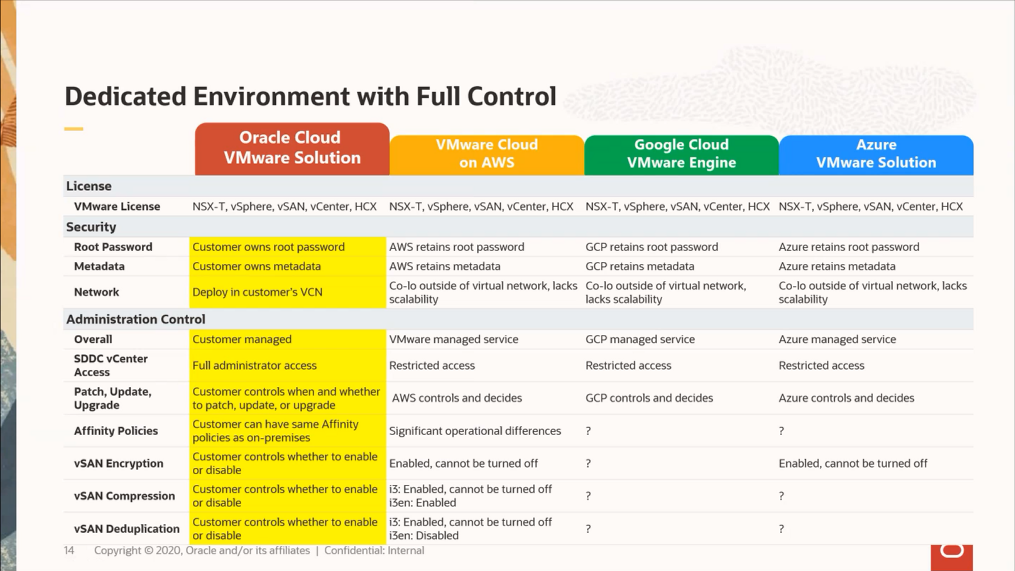 하지만, OCVS는 일단 구성 되고나면 Oracle의 그 어떤 누구도 SDDC 환경에는 접근할 수 없습니다.