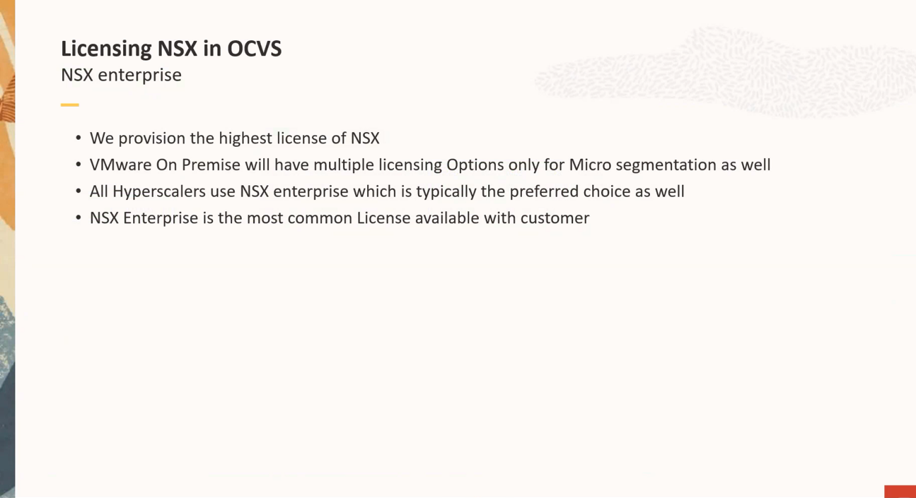 OCVS에서는 NSX 역시 최고 버전의 라이센스를 제공하며, NSX-T의 모든 기능을 사용할 수 있습니다.