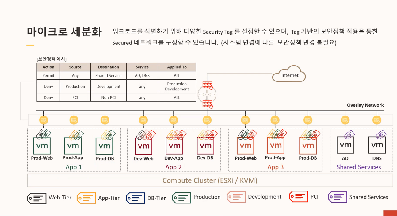 다양한 서비스태그 지정을 통해 MicroSegmentation을 구현할 수 있습니다.
